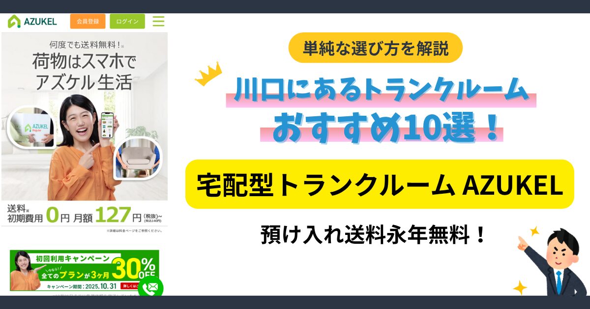 【10.宅配型トランクルーム AZUKEL】日本パープル運営の宅配型サービス!月額127円から・預け入れ送料永年無料