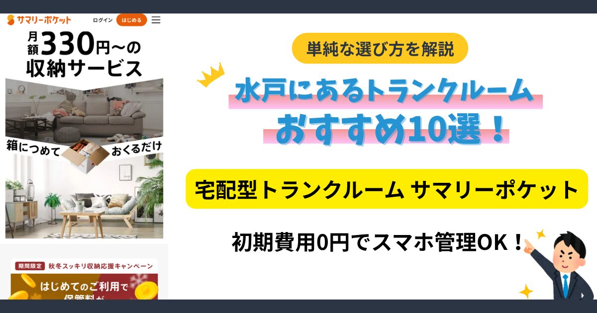 【10.配型トランクルーム サマリーポケット】スマホで完結!月額330円から預けられる収納サービス