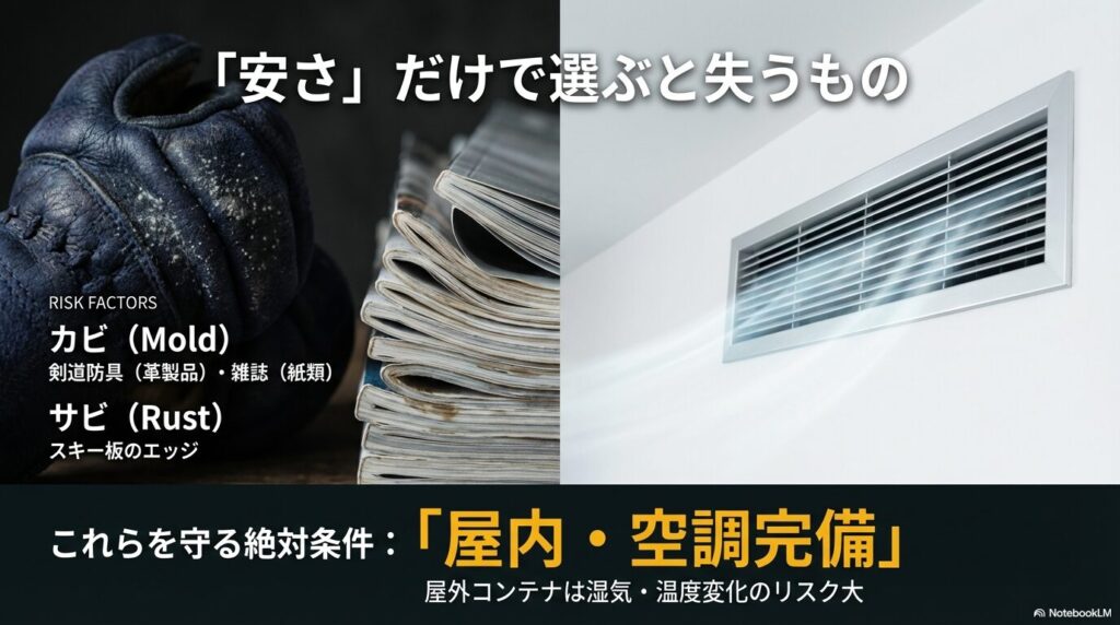 安いトランクルーム、特に屋外に設置されたコンテナタイプなどは、温度や湿度の管理がされていないことが多く、今回のようなデリケートな荷物の保管には適さない場合があります。