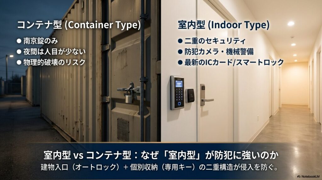 コンテナ型よりも室内型の方が、防犯面で安心できる傾向にあります。